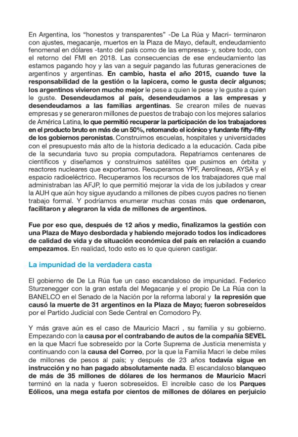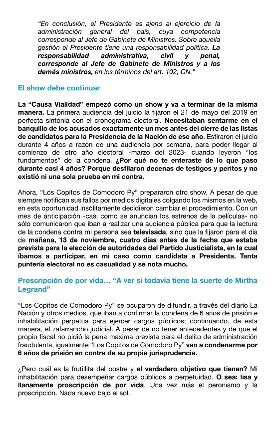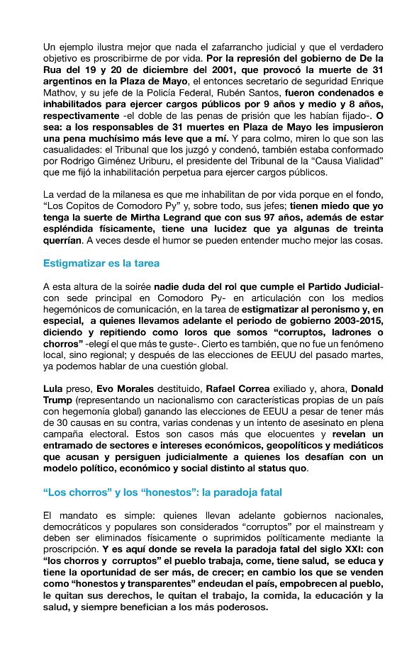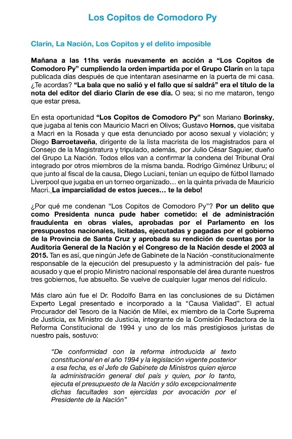 CARTA DE DE LA EX PRESIDENTA CRISTINA KIRCHNER QUE PÚBLICO EN LAS REDES SOCIALES