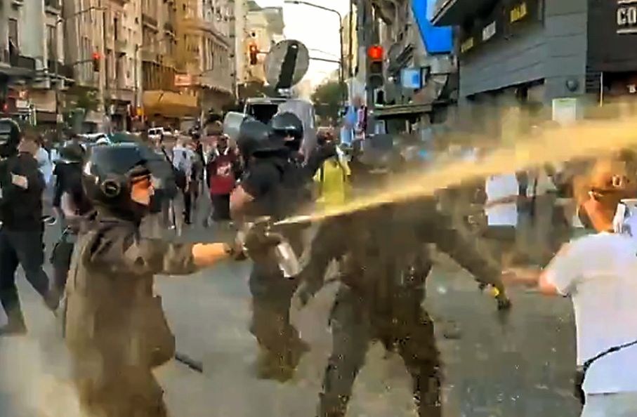 En ese contexto Efectivos de las fuerzas de seguridad reprimieron nuevamente la marcha de los los jubilados de todos los miércoles.Personal policial con ordenes de la ministra de Seguridad Patricia Bullrich reprimieron con gas pimienta contra Los jubilados que se manifestaban, ademas fueron golpeados, mientras los hombres de azul intentaba despejar la Avenida Entre Ríos, en línea con el Protocolo Antiprotesta que impulsa la ministra de Seguridad,