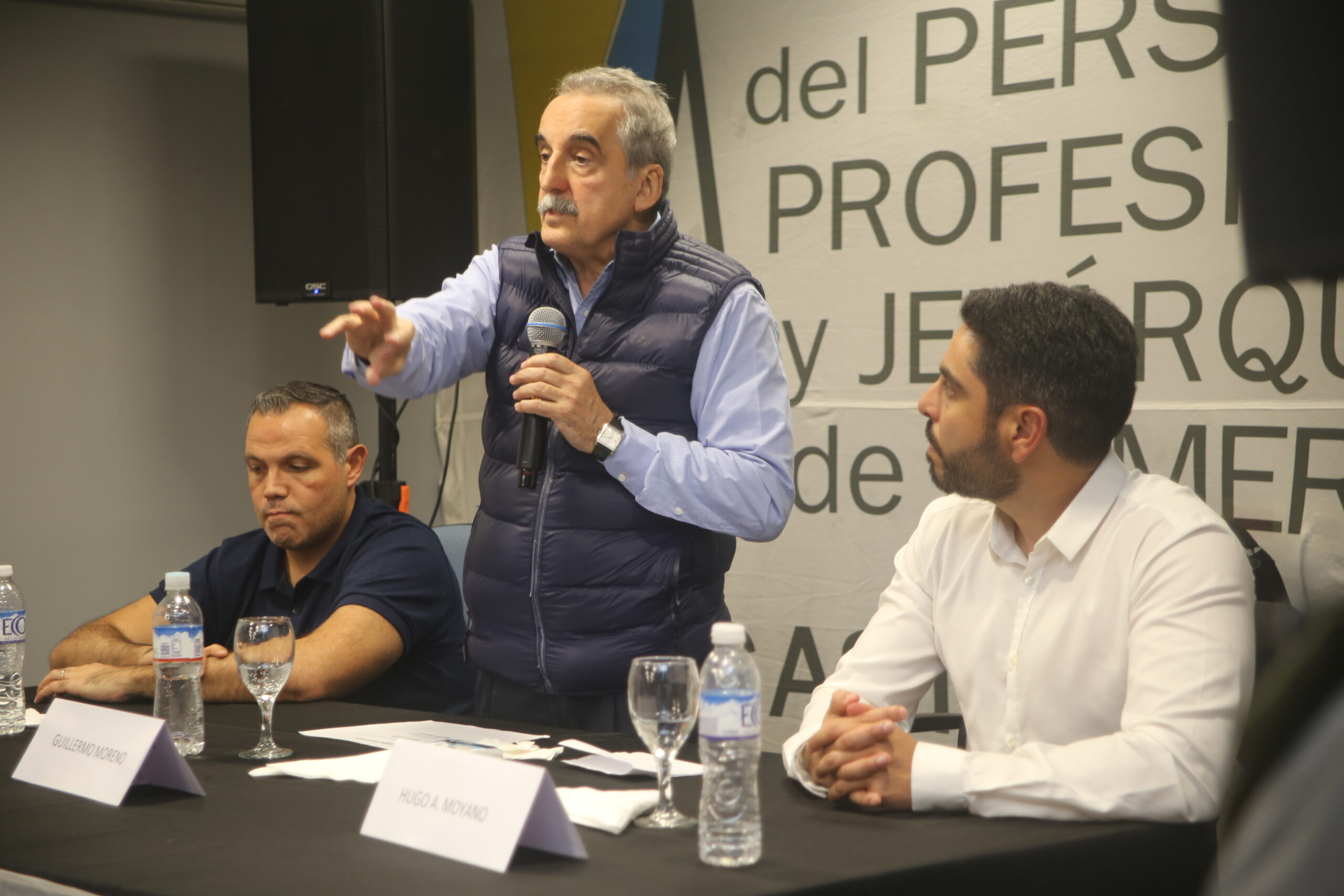 En un encuentro que tuvo lugar en el sindicato de profesionales Jerárquico de Comercio, el Secretario General Gastón Gallo recibió la visita del ex secretario de comercio Guillermo Moreno y del abogado laboralista Hugo Moyano.