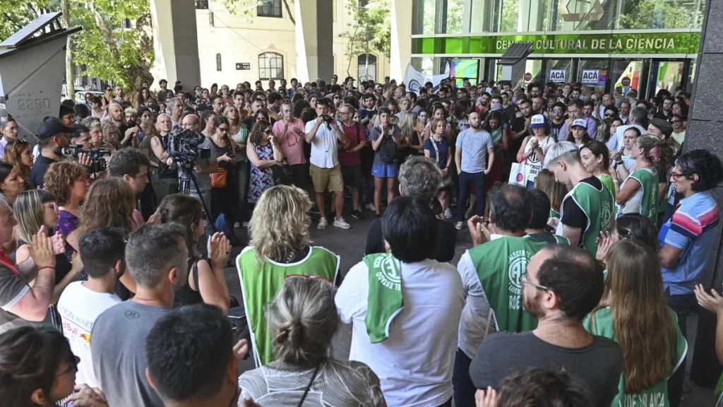 En tanto en las oficinas del Conicet ubicadas en CABA, se vivió una situación de tensión y malestar durante la jornada de este miércoles. Los trabajadores del Polo Científico denunciaron que fueron «amedrentados» y obligados a formar una fila bajo la lluvia para verificar quiénes seguían perteneciendo al organismo, mientras se viralizaban videos y fotos en las redes sociales que evidenciaban esta escena. Desde que asumió el Gobierno, se había anticipado que se realizarían recortes en el gasto público, lo que afectaría directamente a las instituciones estatales y al personal de diferentes rubros. Las tensiones entre el oficialismo y el Consejo se han ido incrementando en los últimos meses debido a la ola de despidos que se han ordenado. Incluso, el pasado 20 de marzo, se realizó un paro en todo el país para reclamar contra el ahogo presupuestario definido por Javier Milei, exigiendo la continuidad laboral de 1.500 personas cuyos contratos vencieron el 31 de marzo. Diversos usuarios compartieron imágenes del edificio y expresaron su malestar ante esta situación. Desde ATE CONICET Capital, redactaron una nota en la que denuncian el despliegue policial y el amedrentamiento hacia los trabajadores del Polo Científico. Repudian estas acciones y exigen respeto hacia los trabajadores.