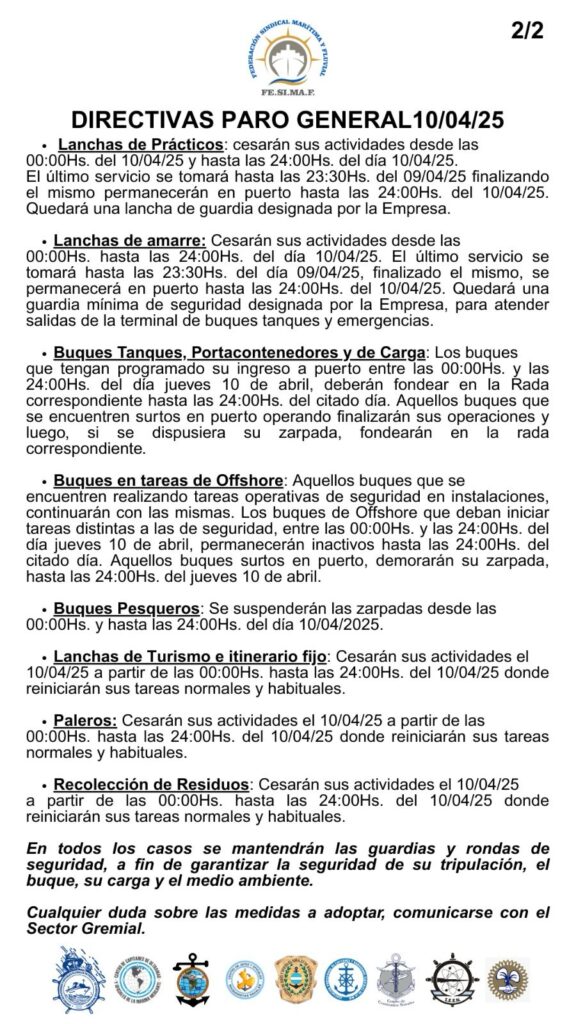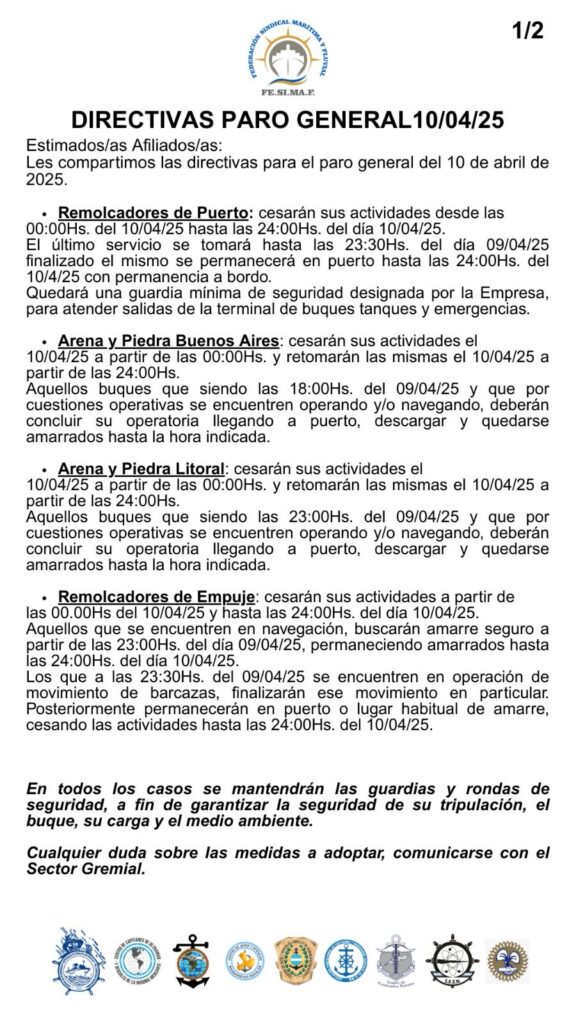 Desde la FESIMAF sostuvieron «Exigimos trabajo digno y freno a las desregulaciones», la medida de fuerza promete paralizar de manera total el transporte marítimo, fluvial y la pesca, afectando significativamente la actividad económica y el comercio en la región.