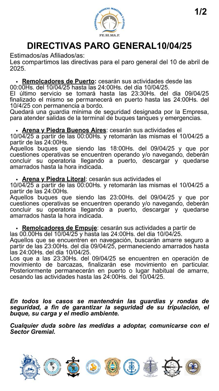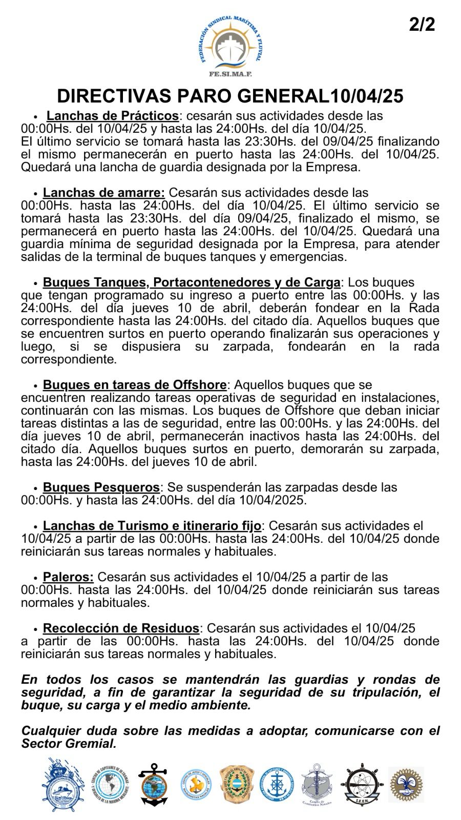 Desde la FESIMAF sostuvieron «Exigimos trabajo digno y freno a las desregulaciones», la medida de fuerza promete paralizar de manera total el transporte marítimo, fluvial y la pesca, afectando significativamente la actividad económica y el comercio en la región.